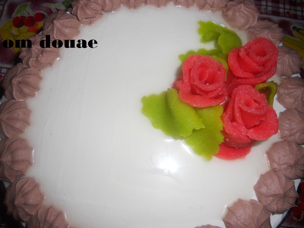 نوضعو فوقها طبقة كريم فريش بعد ما طربناها مزيان ثم نرش من